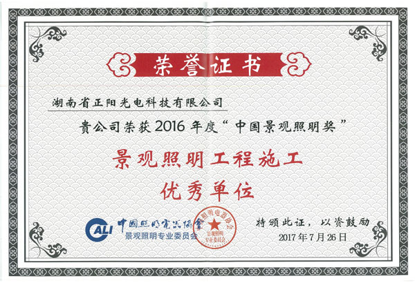 湖南省正陽光電科技有限公司是一家從事亮化工程及大型燈光藝術(shù)的設(shè)計(jì)、制作、安裝和維護(hù)于一體的專業(yè)化公司。公司資質(zhì)齊全、管理嚴(yán)謹(jǐn)、技術(shù)先進(jìn)、實(shí)力雄厚,取得了城市及道路照明工程專業(yè)承包壹級(jí)資質(zhì)、照明工程設(shè)計(jì)專項(xiàng)甲級(jí)資質(zhì)、機(jī)電工程施工總承包貳級(jí)資質(zhì)、施工勞務(wù)等資質(zhì)、國家高新技術(shù)企業(yè)、國家“重質(zhì)量·守誠信”示范企業(yè)。